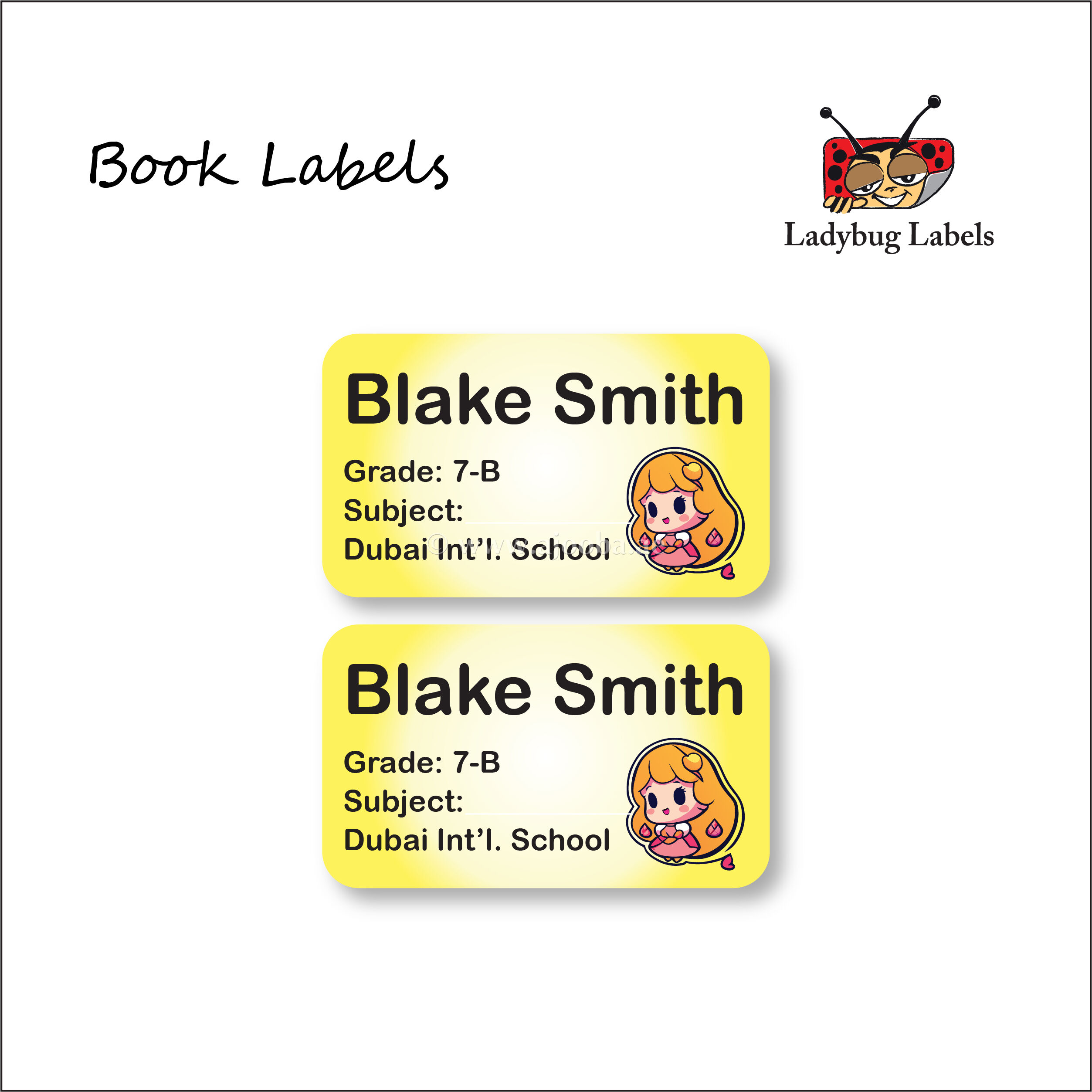 Book labels have traditionally been known as bookplates, however bookplates are usually a little bit more fancy and not only bear the owner's name but also things such as the owner's motto, crest, coat of arms or badge. After the inscription of the owner's name on a custom bookplate it was usually followed by the words "from the library of...", or in Latin, "ex libris". Simple typographical bookplates are termed "book labels”. We’ve gone with simple (with additional options of dinos, ice creams, cup cakes, unicorns, pussy cats and many many more designs to choose from).