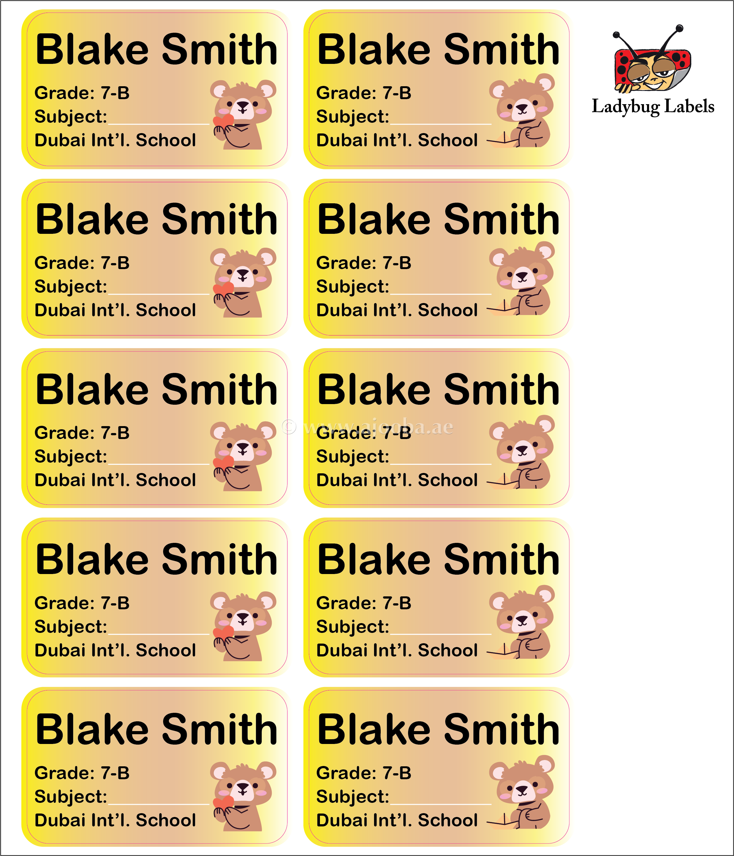 Book labels have traditionally been known as bookplates, however bookplates are usually a little bit more fancy and not only bear the owner's name but also things such as the owner's motto, crest, coat of arms or badge. After the inscription of the owner's name on a custom bookplate it was usually followed by the words "from the library of...", or in Latin, "ex libris". Simple typographical bookplates are termed "book labels”. We’ve gone with simple (with additional options of dinos, ice creams, cup cakes, unicorns, pussy cats and many many more designs to choose from).