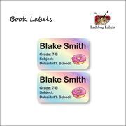Book labels have traditionally been known as bookplates, however bookplates are usually a little bit more fancy and not only bear the owner's name but also things such as the owner's motto, crest, coat of arms or badge. After the inscription of the owner's name on a custom bookplate it was usually followed by the words "from the library of...", or in Latin, "ex libris". Simple typographical bookplates are termed "book labels”. We’ve gone with simple (with additional options of dinos, ice creams, cup cakes, unicorns, pussy cats and many many more designs to choose from).