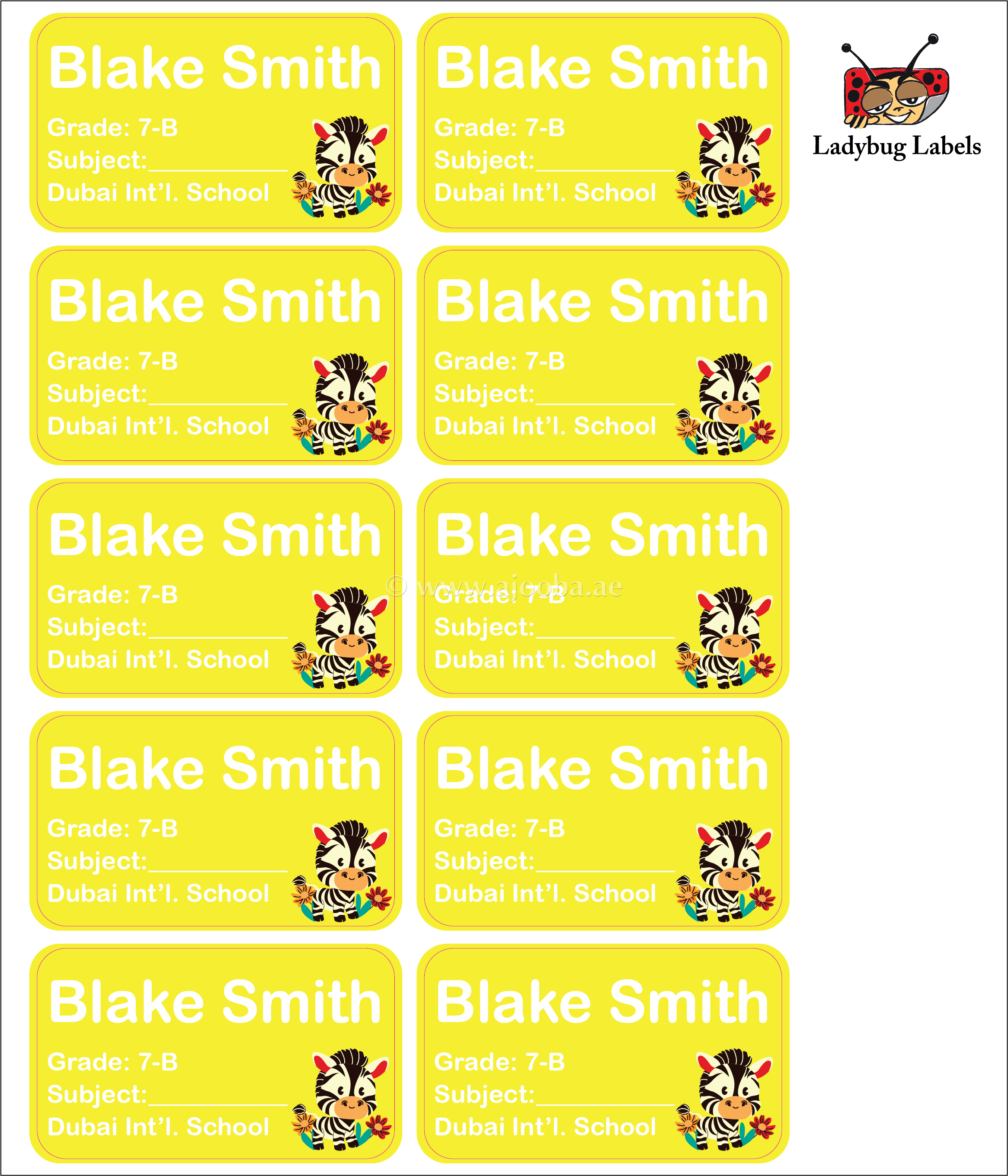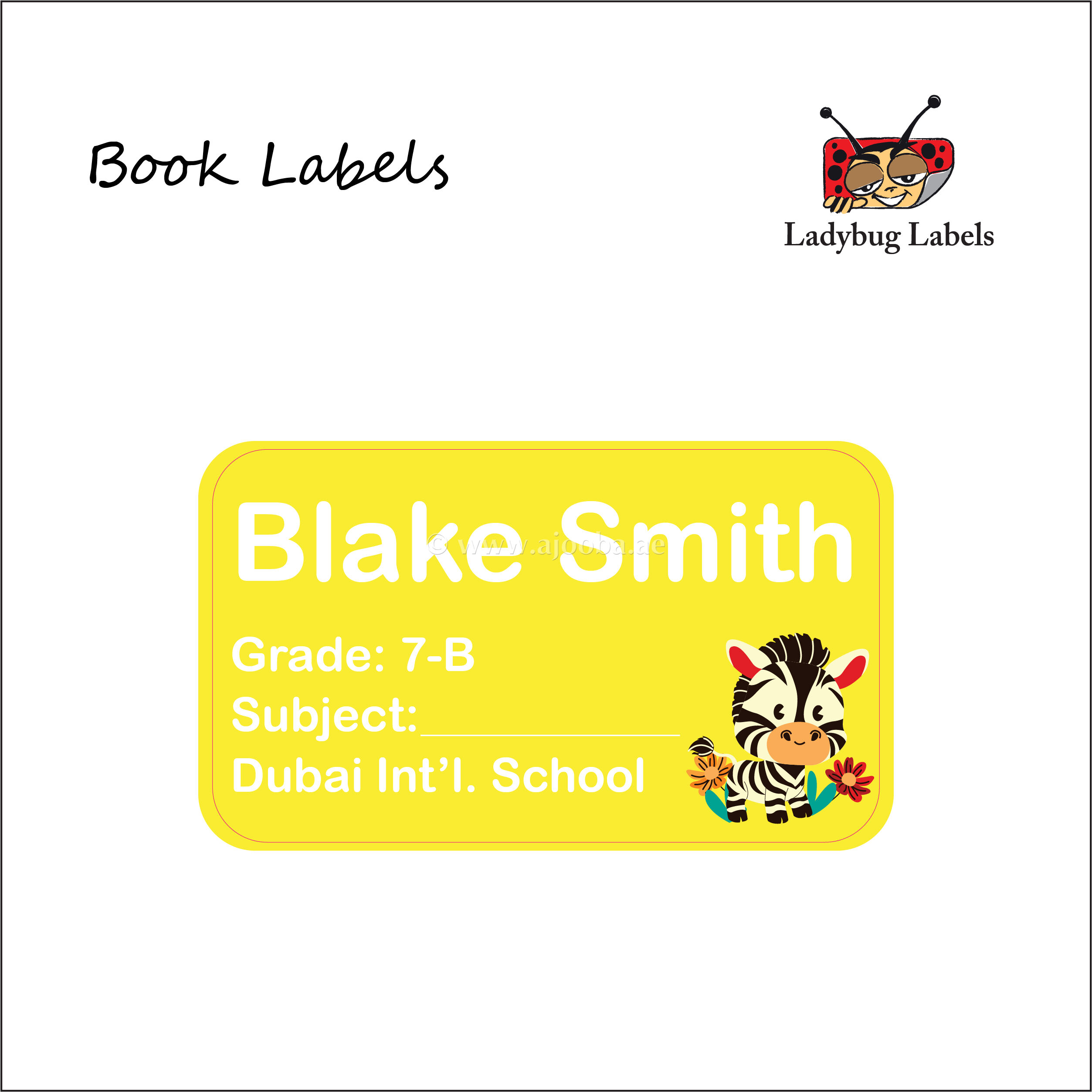 Happy Zebra-Pack of 40 Book Labels