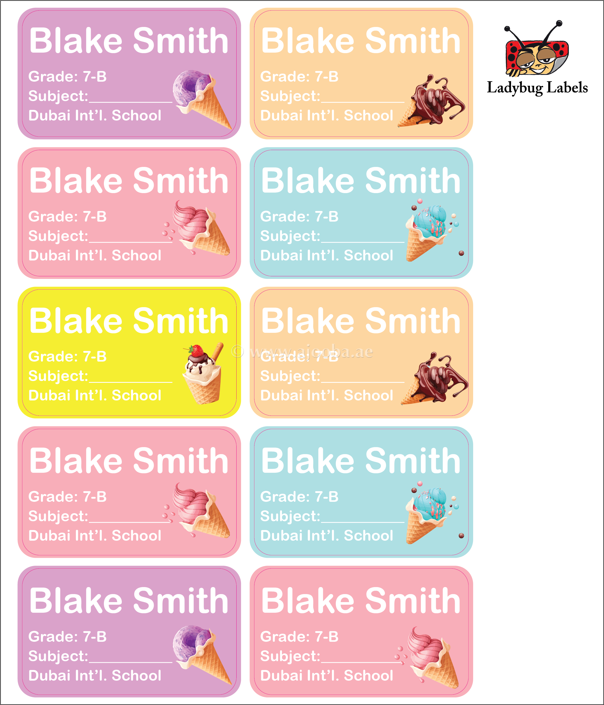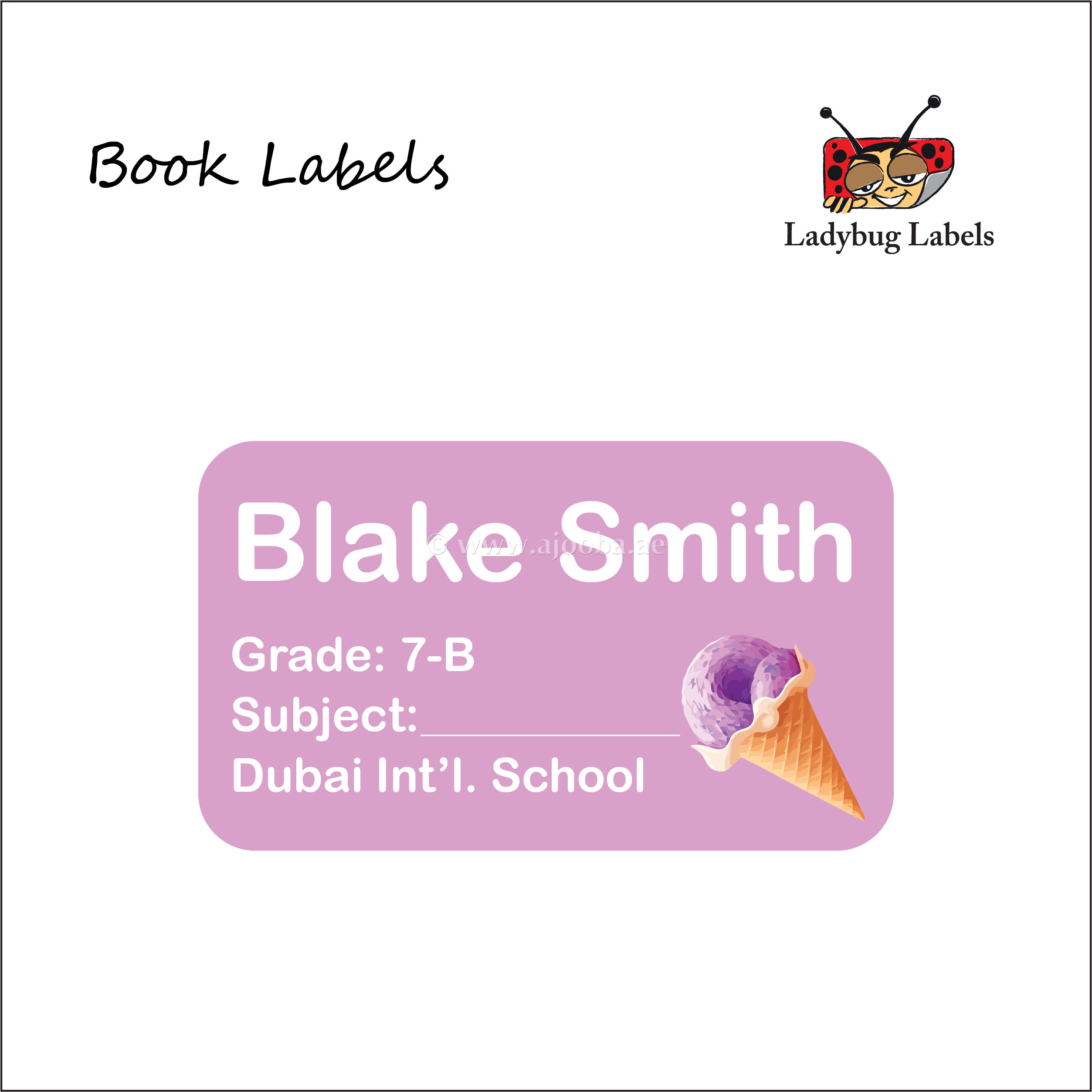Book labels have traditionally been known as bookplates, however bookplates are usually a little bit more fancy and not only bear the owner's name but also things such as the owner's motto, crest, coat of arms or badge. After the inscription of the owner's name on a custom bookplate it was usually followed by the words "from the library of...", or in Latin, "ex libris". Simple typographical bookplates are termed "book labels”. We’ve gone with simple (with additional options of dinos, ice creams, cup cakes, unicorns, pussy cats and many many more designs to choose from).