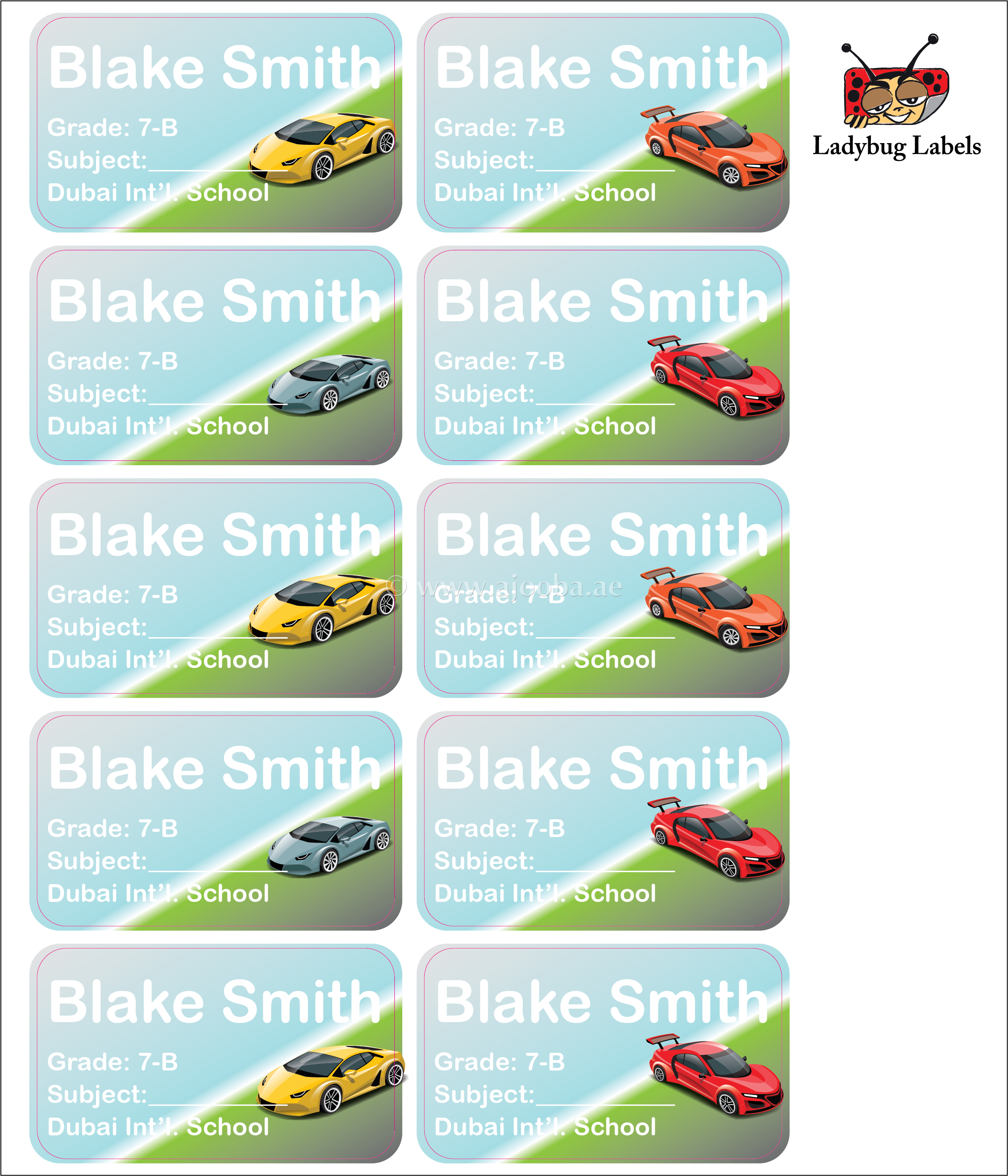 Racing Cars-Pack of 40 Book Labels