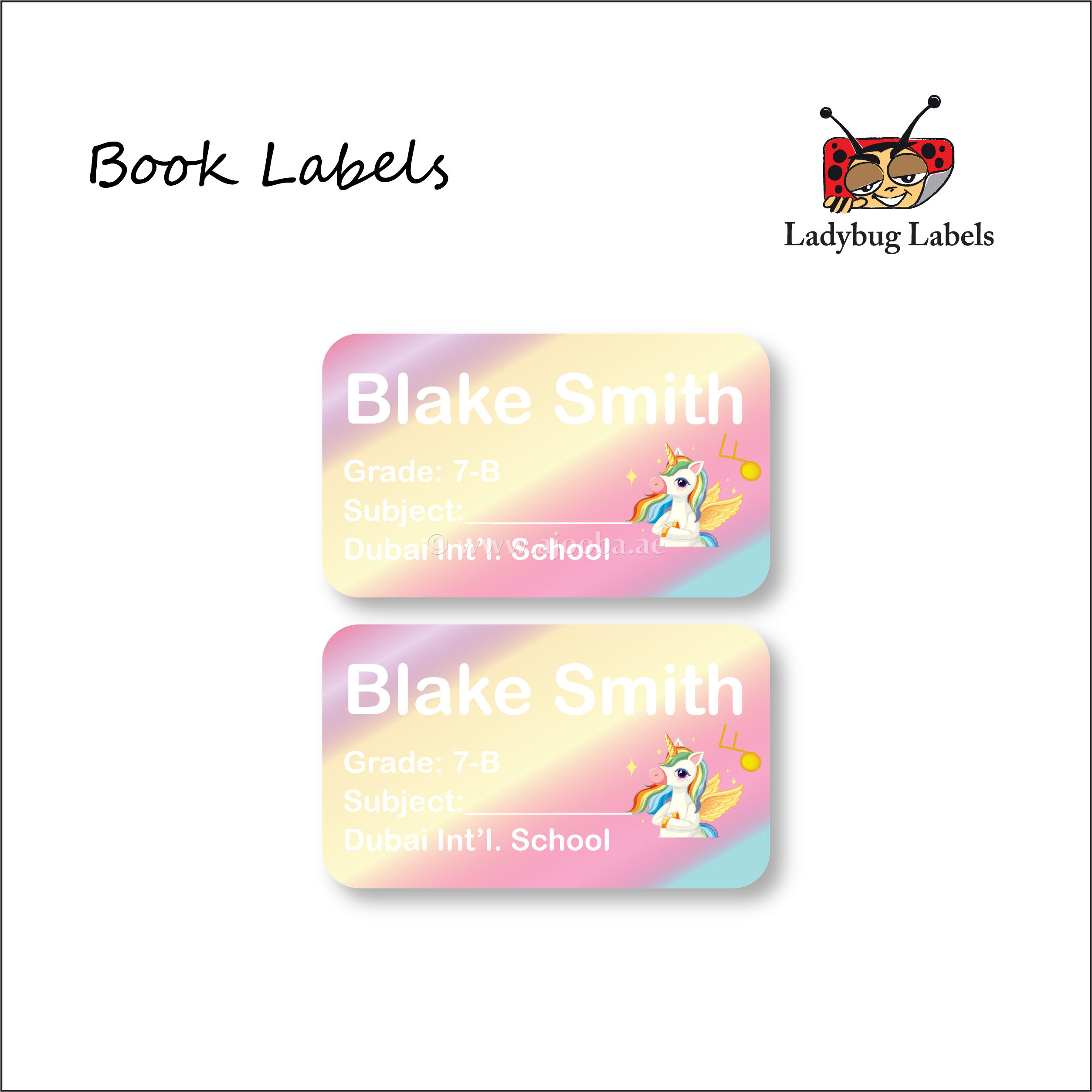 Book labels have traditionally been known as bookplates, however bookplates are usually a little bit more fancy and not only bear the owner's name but also things such as the owner's motto, crest, coat of arms or badge. After the inscription of the owner's name on a custom bookplate it was usually followed by the words "from the library of...", or in Latin, "ex libris". Simple typographical bookplates are termed "book labels”. We’ve gone with simple (with additional options of dinos, ice creams, cup cakes, unicorns, pussy cats and many many more designs to choose from).