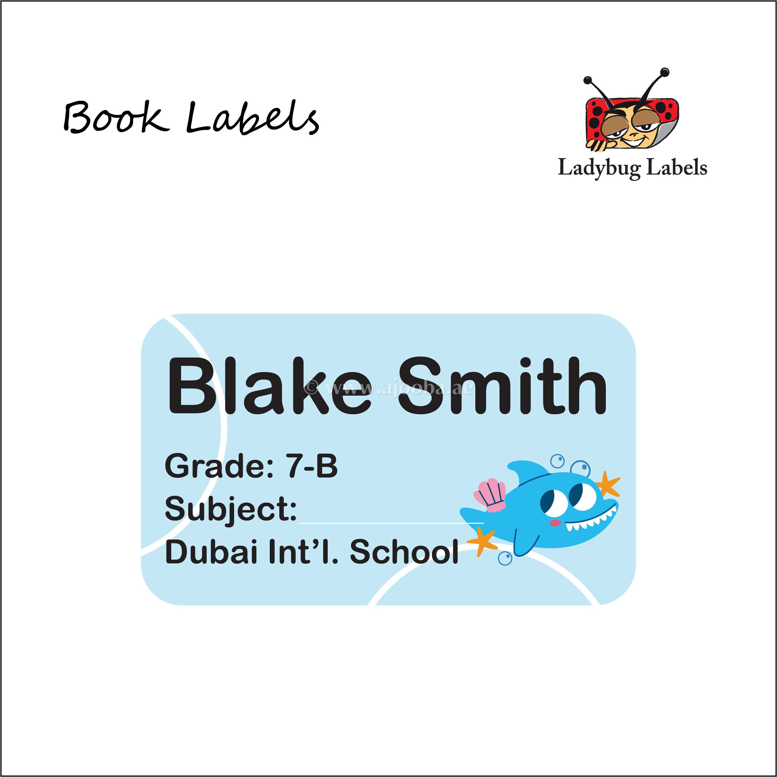 Shy Shark-Pack of 40 Book Labels