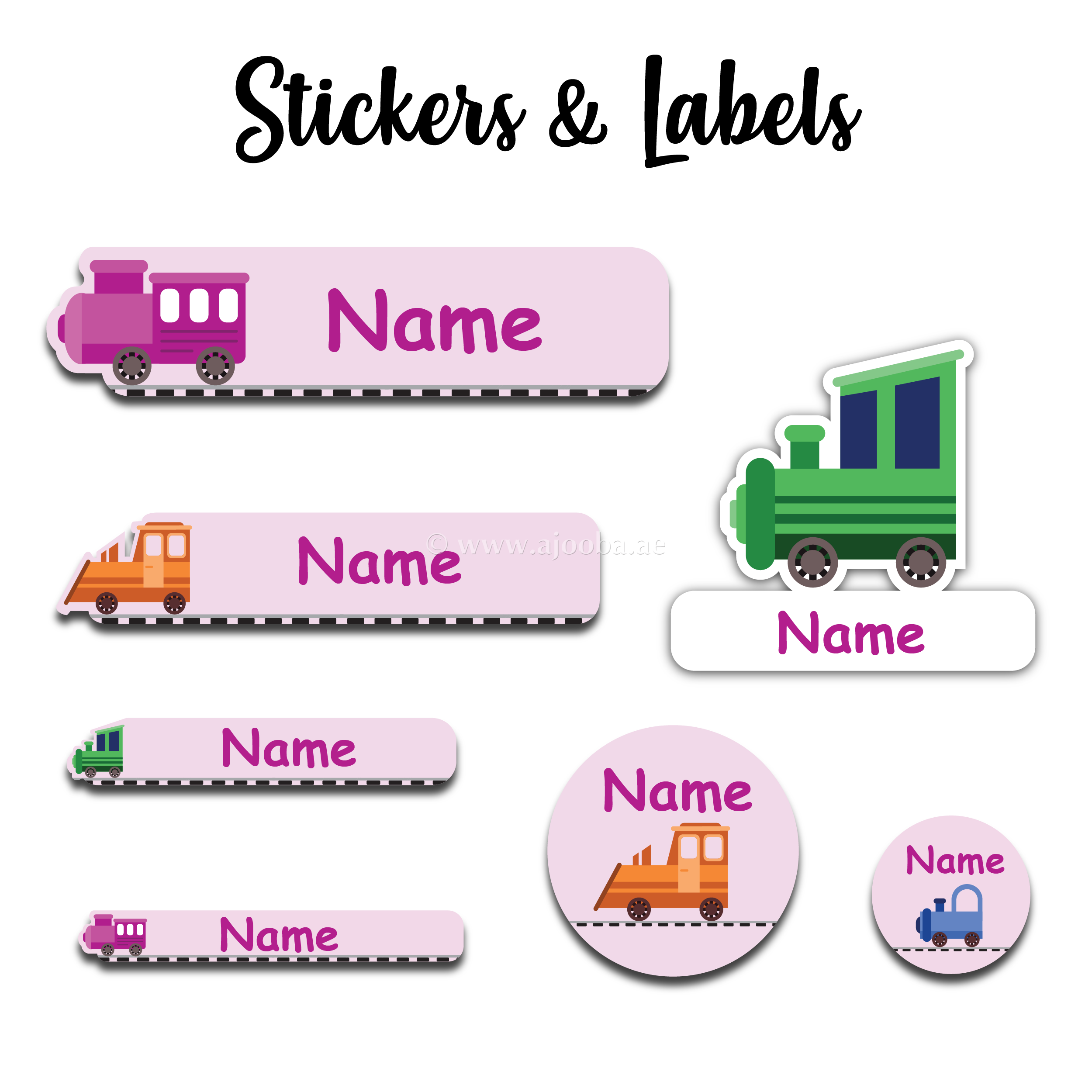 Keep your child's school supplies organized and accounted for with the Colorful Train Engines School Labels Pack from Ajooba labels. These durable, waterproof school supply labels ensure that everything from textbooks to tablets returns home instead of getting lost. They are ideal for pencils, folders, backpacks, art supplies, instrument cases, clothing items, and more.