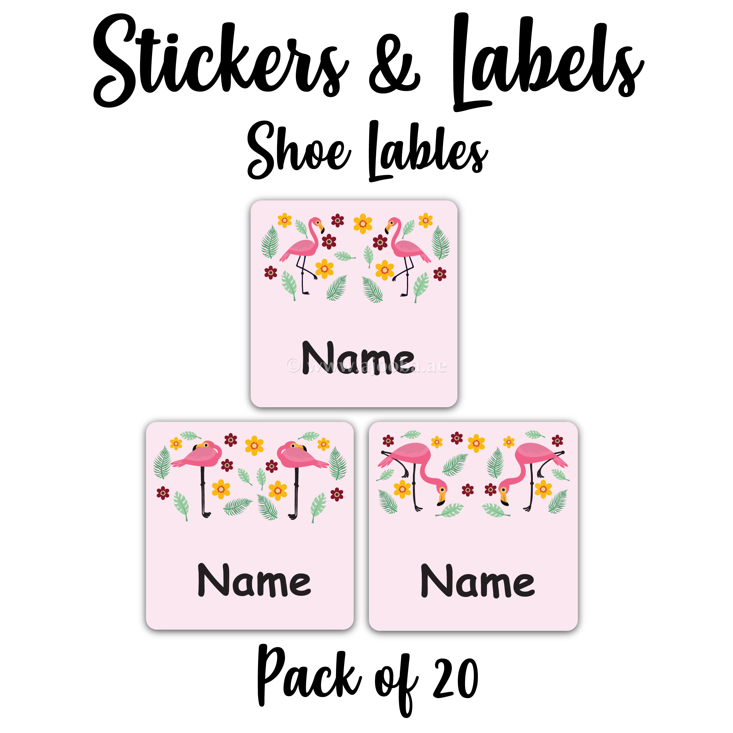 If you have a little one that tends to lose their shoes or get them mixed up with their classmates or peers at school or daycare or even the sand play area, then Ajooba labels has a solution with our Flamingo Camp Theme Labels! Our custom shoe labels for your kids are the best way to personalize their shoes and keep track of them. These name labels for kids feature Flamingo Camp design and are available with a extra layer of lamination.
