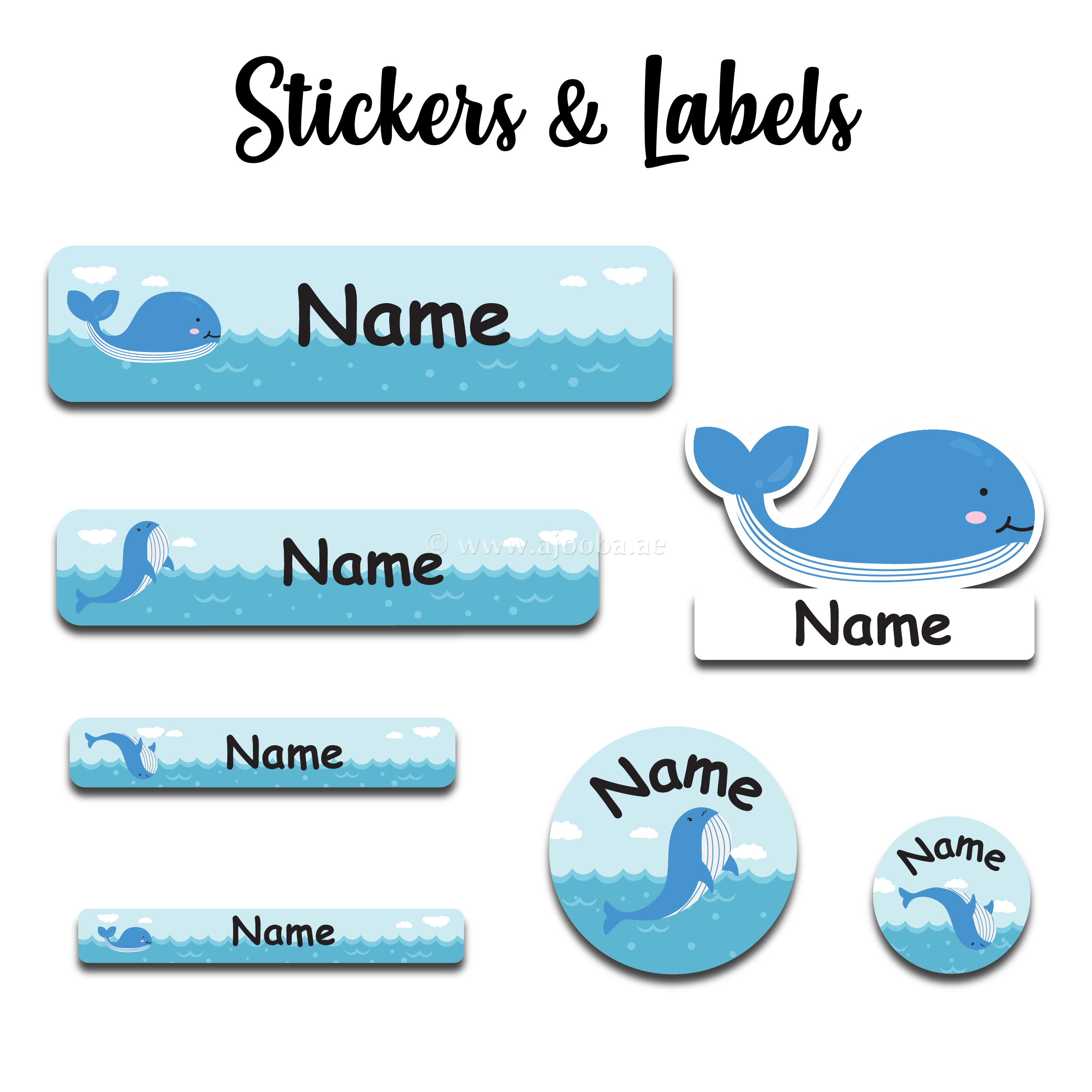 Keep your child's school supplies organized and accounted for with the Incredible Whale School Labels Pack from Ajooba labels. These durable, waterproof school supply labels ensure that everything from textbooks to tablets returns home instead of getting lost. They are ideal for pencils, folders, backpacks, art supplies, instrument cases, clothing items, and more.