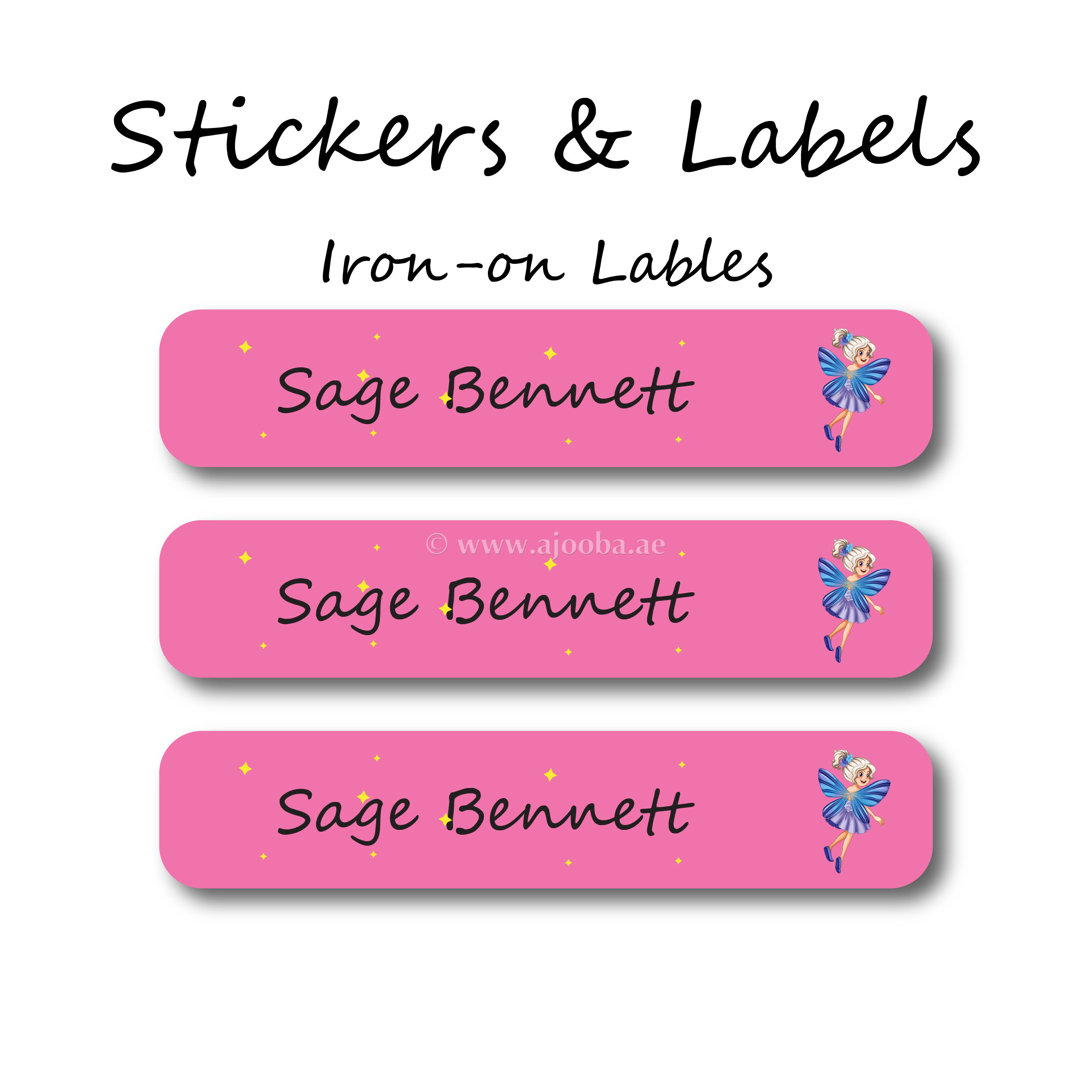 If you’re looking for a permanent labeling solution for your child’s clothing, hen Ajooba Labels has the solution with our Little Fairy Custom Iron-On Clothing Labels Pack! This pack of iron-on clothing labels for kids will help you permanently tag your child’s clothing, so there won’t be any more mix-ups or lost and founds. Our permanent name stickers are for parents looking to take the next step in their organization! Our custom labels allow you to browse through all our styles and design a set of personalized name stickers that are just as unique as your little one!