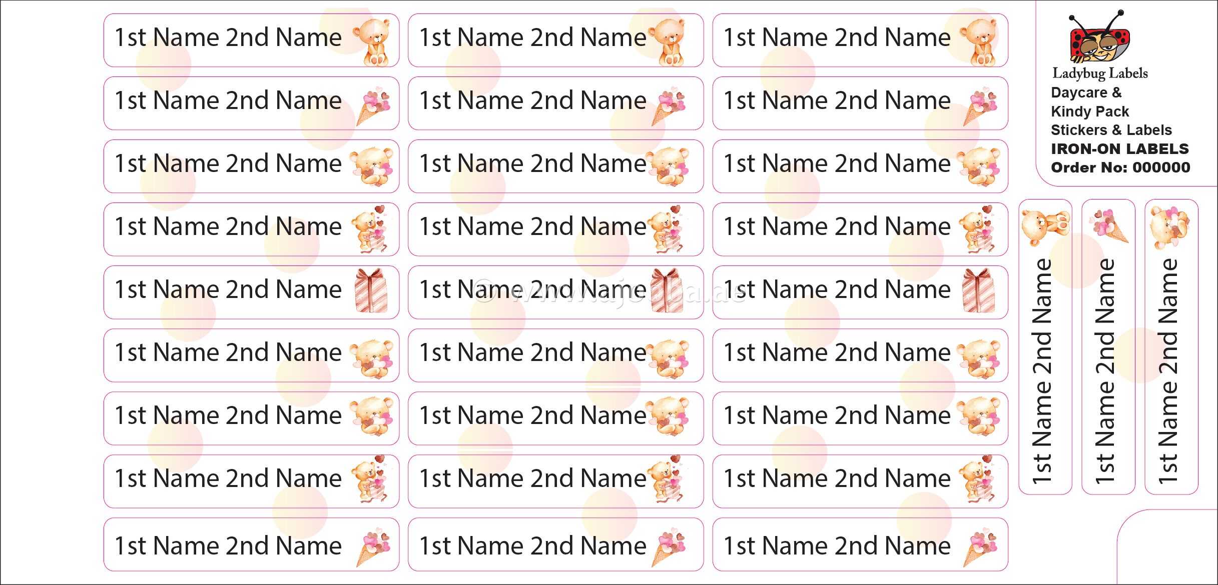 If you’re looking for a permanent labeling solution for your child’s clothing, hen Ajooba Labels has the solution with our Teddy Bear Custom Iron-On Clothing Labels Pack! This pack of iron-on clothing labels for kids will help you permanently tag your child’s clothing, so there won’t be any more mix-ups or lost and founds. Our permanent name stickers are for parents looking to take the next step in their organization! Our custom labels allow you to browse through all our styles and design a set of personalized name stickers that are just as unique as your little one!