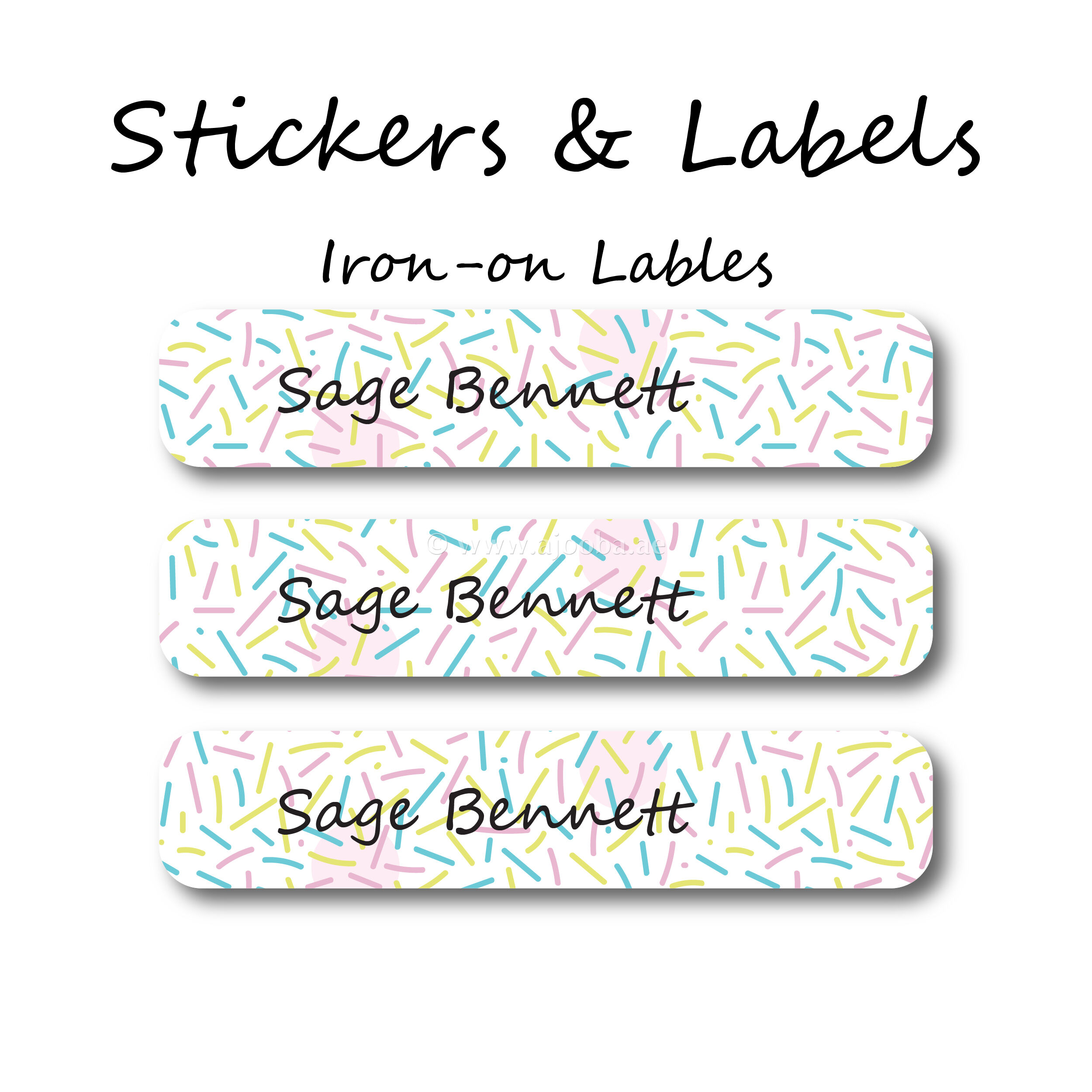If you’re looking for a permanent labeling solution for your child’s clothing, hen Ajooba Labels has the solution with our White Confetti Custom Iron-On Clothing Labels Pack! This pack of iron-on clothing labels for kids will help you permanently tag your child’s clothing, so there won’t be any more mix-ups or lost and founds. Our permanent name stickers are for parents looking to take the next step in their organization! Our custom labels allow you to browse through all our styles and design a set of personalized name stickers that are just as unique as your little one!