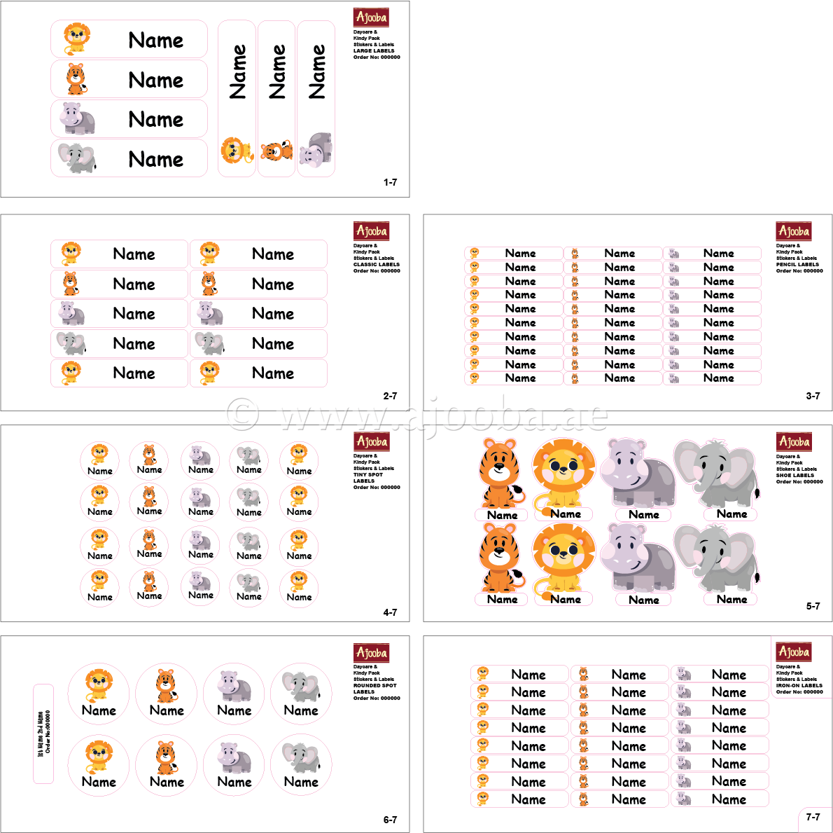 Keep your child's school supplies organized and accounted for with the Jungle Animals School Labels Pack from Ajooba labels. These durable, waterproof school supply labels ensure that everything from textbooks to tablets returns home instead of getting lost. They are ideal for pencils, folders, backpacks, art supplies, instrument cases, clothing items, and more.