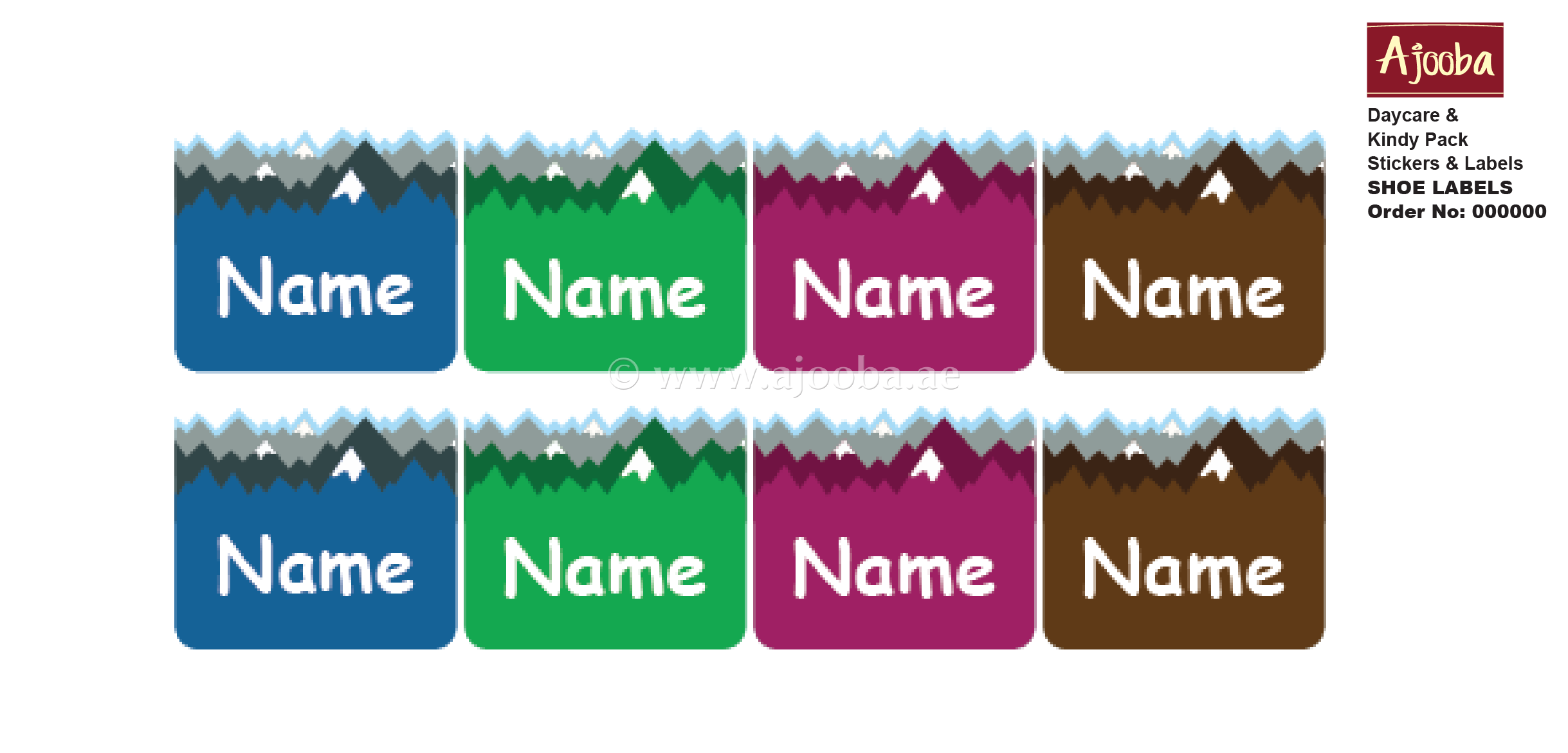 If you have a little one that tends to lose their shoes or get them mixed up with their classmates or peers at school or daycare or even the sand play area, then Ajooba labels has a solution with our Mountain Top Theme Labels! Our custom shoe labels for your kids are the best way to personalize their shoes and keep track of them. These name labels for kids feature Mountain Top design and are available with a extra layer of lamination.