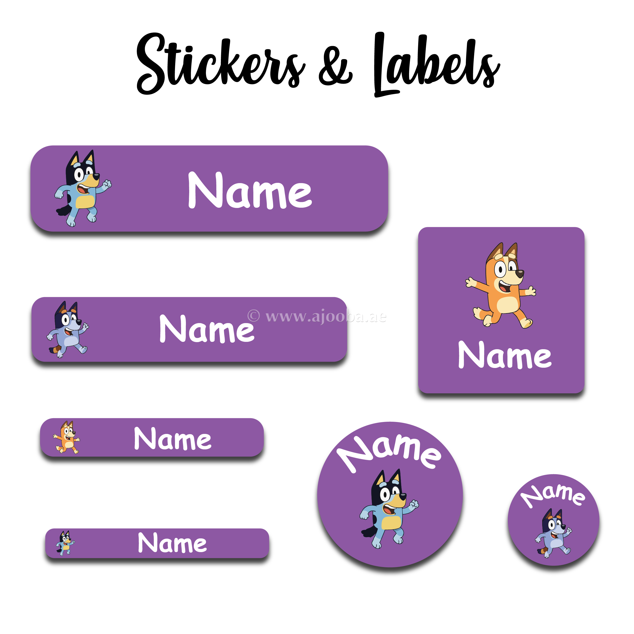 Ajooba - Blue Dog Purple Personalized Labels -Value pack of 108 labels