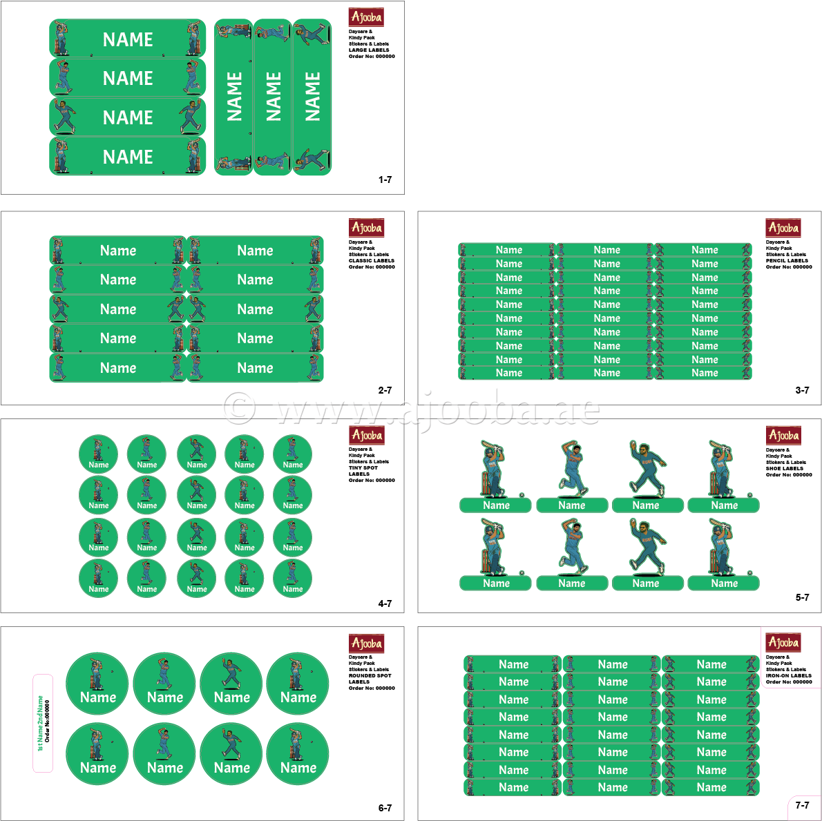Ajooba - Cricket Green Personalized Labels -Value pack of 108 labels