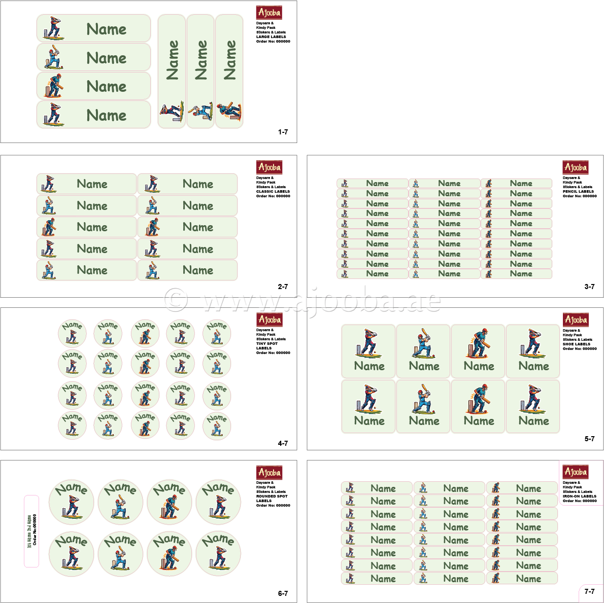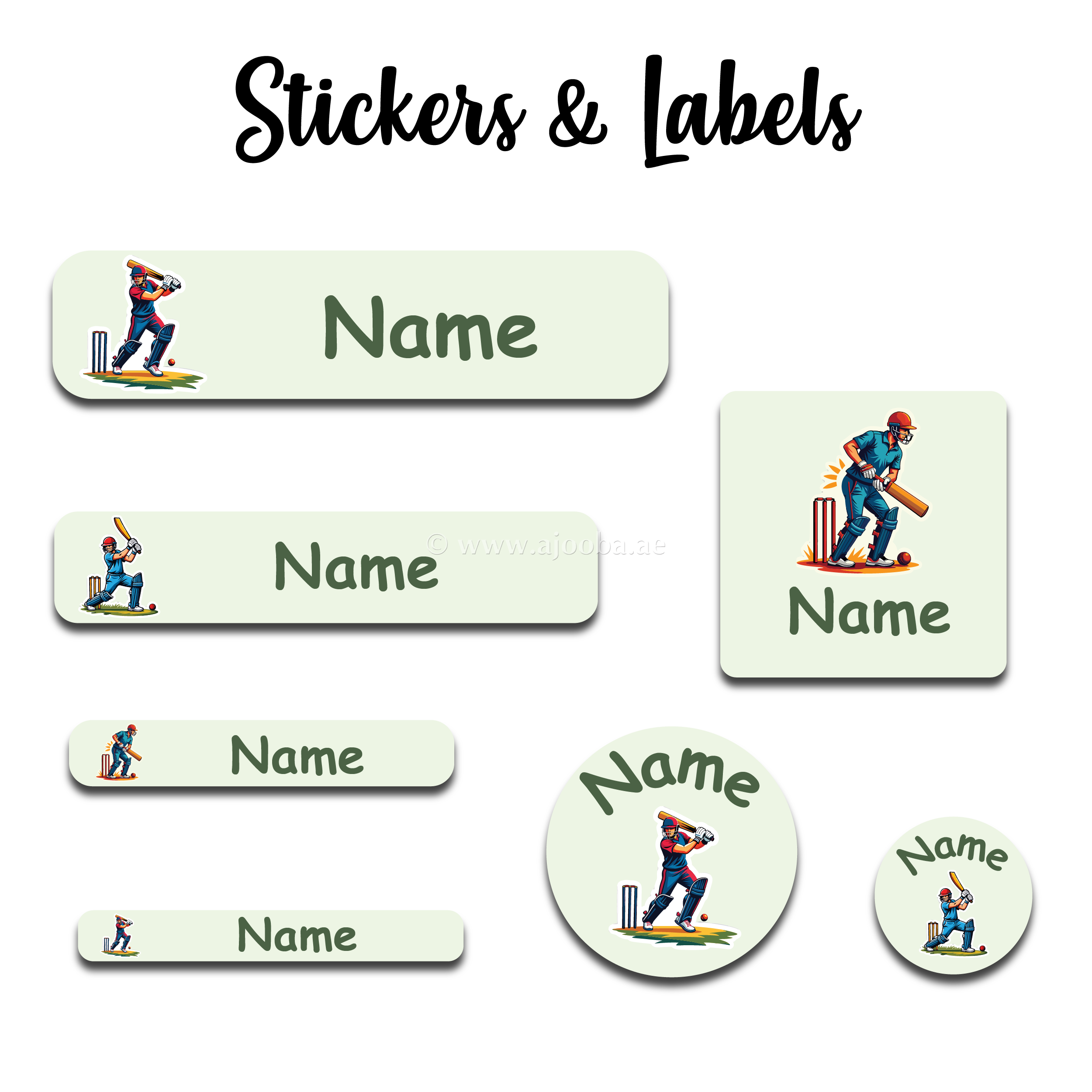 Ajooba - Cricket Light Green Personalized Labels -Value pack of 108 labels