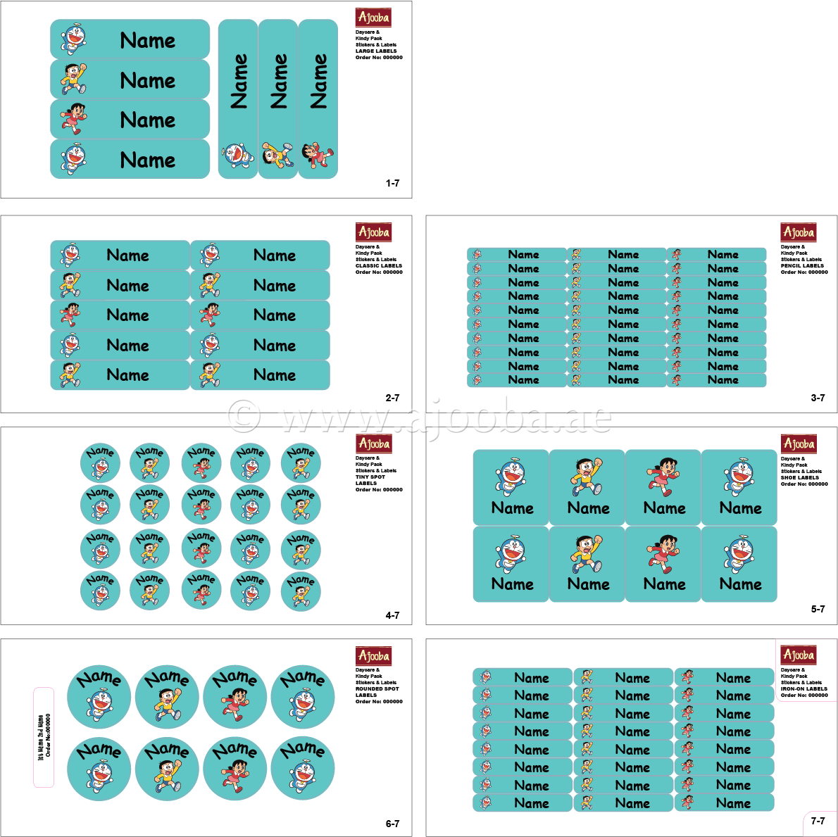 Ajooba - Doraemon Sea Blue Personalized Labels -Value pack of 108 labels