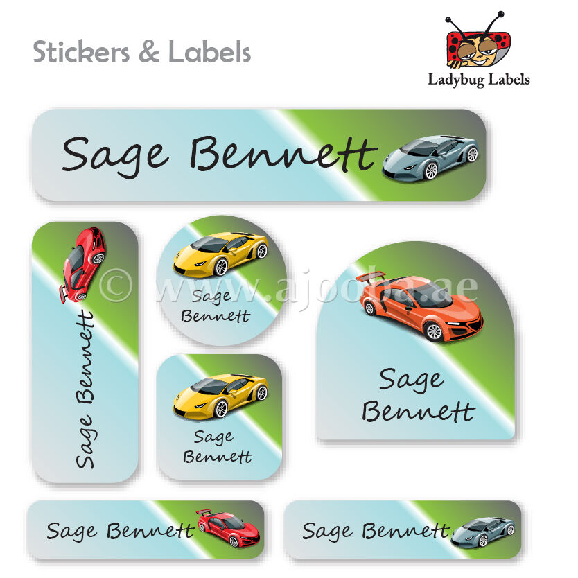 Keep your child's school supplies organized and accounted for with the Racing Cars Labels Pack from Ajooba Labels. These durable, waterproof school supply labels ensure that everything from textbooks to tablets returns home instead of getting lost. They are ideal for pencils, folders, backpacks, art supplies, instrument cases, clothing items, and more.