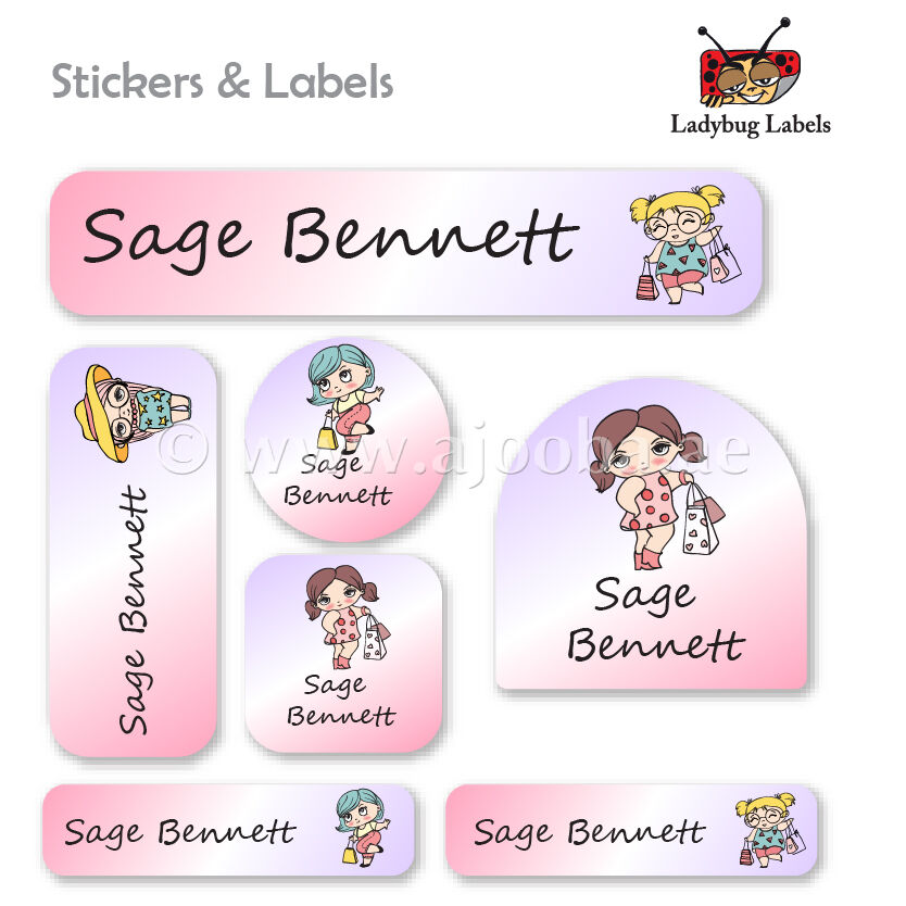 Keep your child's school supplies organized and accounted for with the Shopping Girl Labels Pack from Ajooba Labels. These durable, waterproof school supply labels ensure that everything from textbooks to tablets returns home instead of getting lost. They are ideal for pencils, folders, backpacks, art supplies, instrument cases, clothing items, and more.