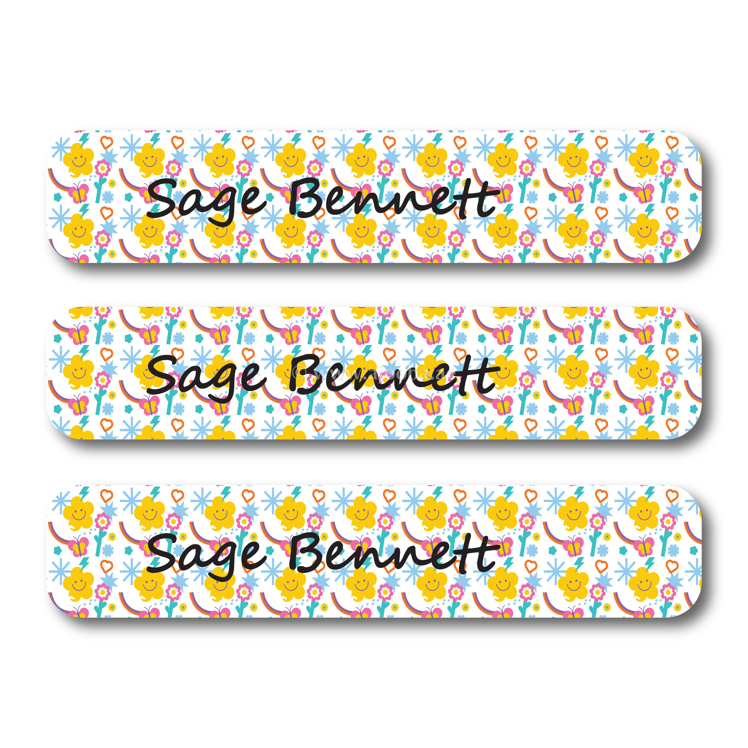 Keep your child's school supplies organized and accounted for with the Star and Butterfly Labels Pack from Ajooba Labels. These durable, waterproof school supply labels ensure that everything from textbooks to tablets returns home instead of getting lost. They are ideal for pencils, folders, backpacks, art supplies, instrument cases, clothing items, and more.