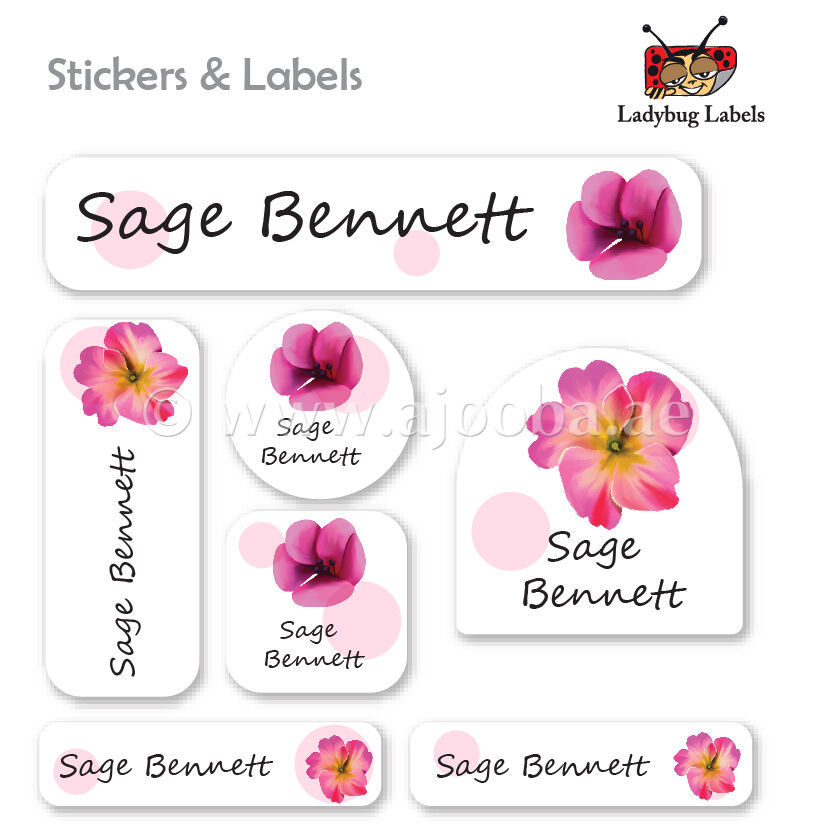 Keep your child's school supplies organized and accounted for with the Wild Orchid Flower Labels Pack from Ajooba Labels. These durable, waterproof school supply labels ensure that everything from textbooks to tablets returns home instead of getting lost. They are ideal for pencils, folders, backpacks, art supplies, instrument cases, clothing items, and more.