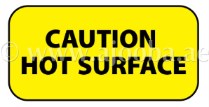 Self-Adhesive Caution Hot Surface Labels printed black on gloss yellow permanent vinyl. Labels measure 20x10mm & are supplied in packs of 100.