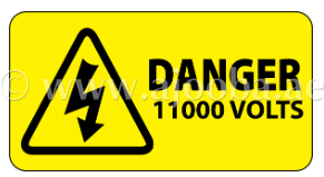 Self-Adhesive Danger 11000 Volts Labels printed black on gloss yellow permanent vinyl & laminated for additional durability. Suitable for both internal and external use. Labels measure 100x50mm & are supplied in packs of 25.