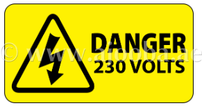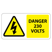 Self-Adhesive Danger 230 Volts Labels printed black on gloss yellow permanent vinyl & laminated for additional durability. Suitable for both internal and external use. Labels measure 50x25mm & are supplied in packs of 100.