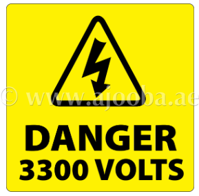 Danger 3300 Volts Labels 100x100mm