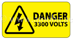 Self-Adhesive Danger 3300 Volts Labels printed black on gloss yellow permanent vinyl & laminated for additional durability. Suitable for both internal and external use. Labels measure 63x33mm & are supplied in packs of 50.