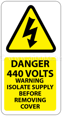 Danger 440 Volts Isolate Supply Labels 33x63mm