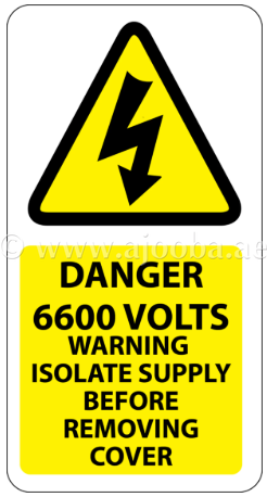 Danger 6600 Volts Isolate Supply Labels 25x50mm