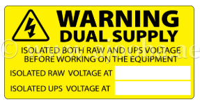 Self-Adhesive Warning Dual Supply Labels printed yellow & black on matt white permanent vinyl. Labels measure 100x50mm & are supplied in packs of 25.