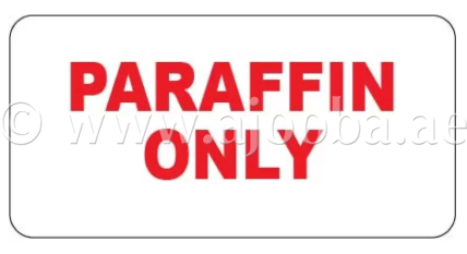 Advisory Label Printed Red on Permanent White Vinyl – Overlaminated With Protective Film. Size 50 x 25mm. Label Advises to Use Paraffin Only