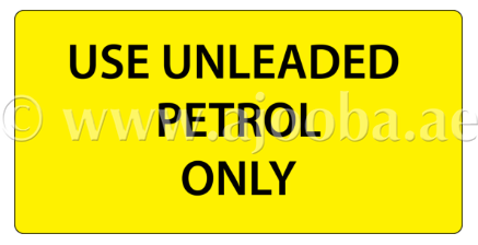 Self-Adhesive Use Unleaded Petrol Only Labels printed black on gloss yellow permanent vinyl and laminated. Labels are available in a choice of sizes.