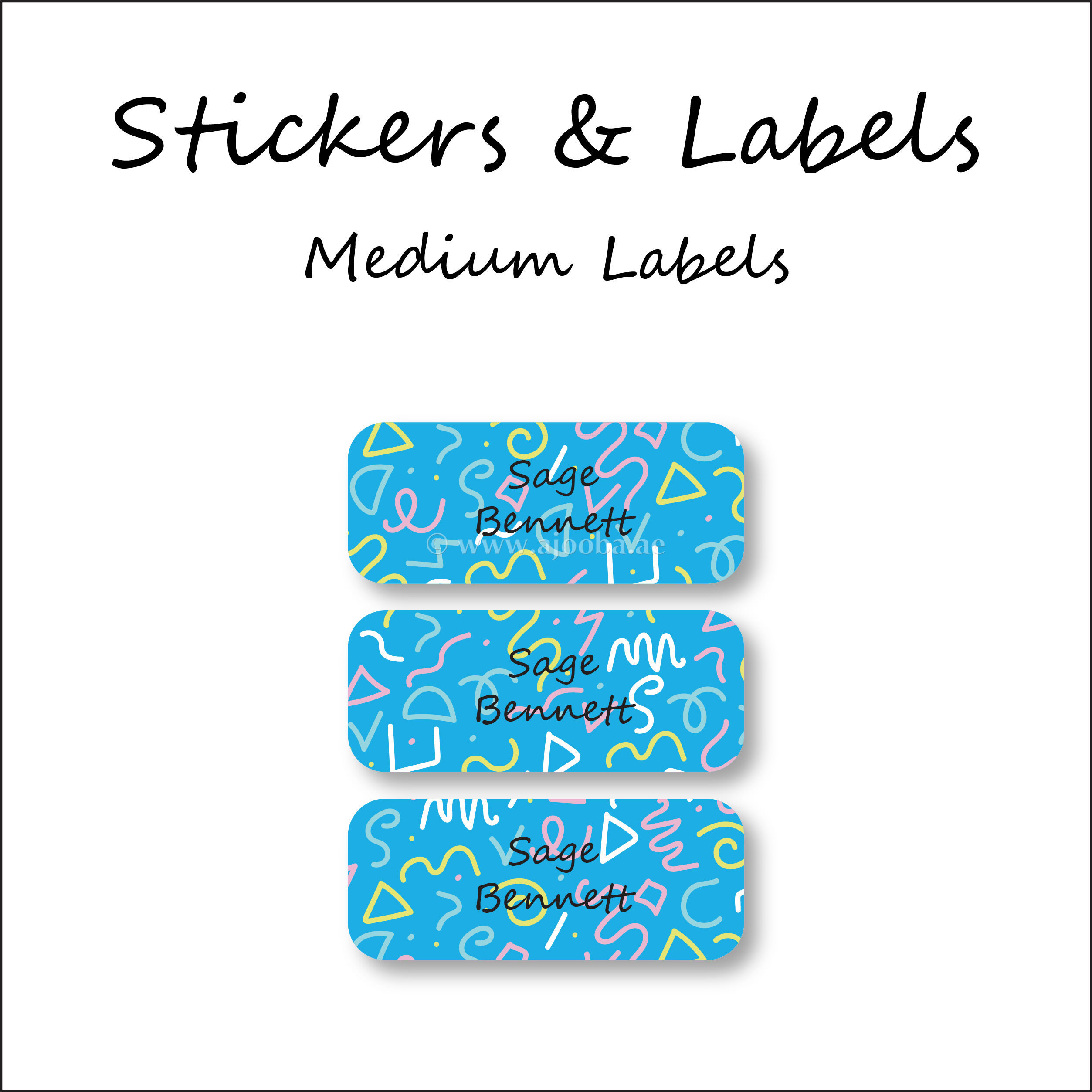 These personalized name stickers are a great way to keep tabs on your child's lunchboxes, folders, notebooks, snack containers, water bottles, electronics, sports gear, medical devices, skateboards, and more. Our kid name stickers are waterproof, dishwasher-safe, freezer-safe, and microwave-safe. They're easy to use: simply peel and stick onto clean, dry surfaces! With bold styles and clear, legible print, your child’s belongings will stand out in the crowd! Label items for camp, school, daycare, field trips, sleepovers, and more!