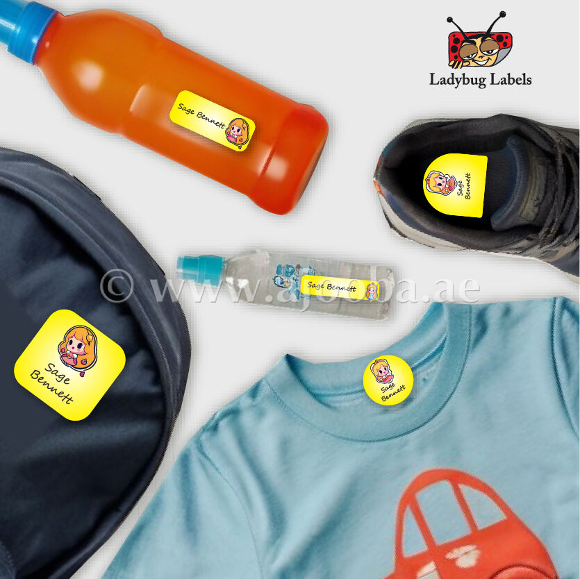 Ajooba Labels is here to stop your trips to the lost and found and to save you money from replacing lost items with our Cherry Girl theme Name Labels! These kid name labels will keep your child’s belongings organized, accounted for, and personalized. Our durable name stickers are perfect for everything that leaves the house with your child.