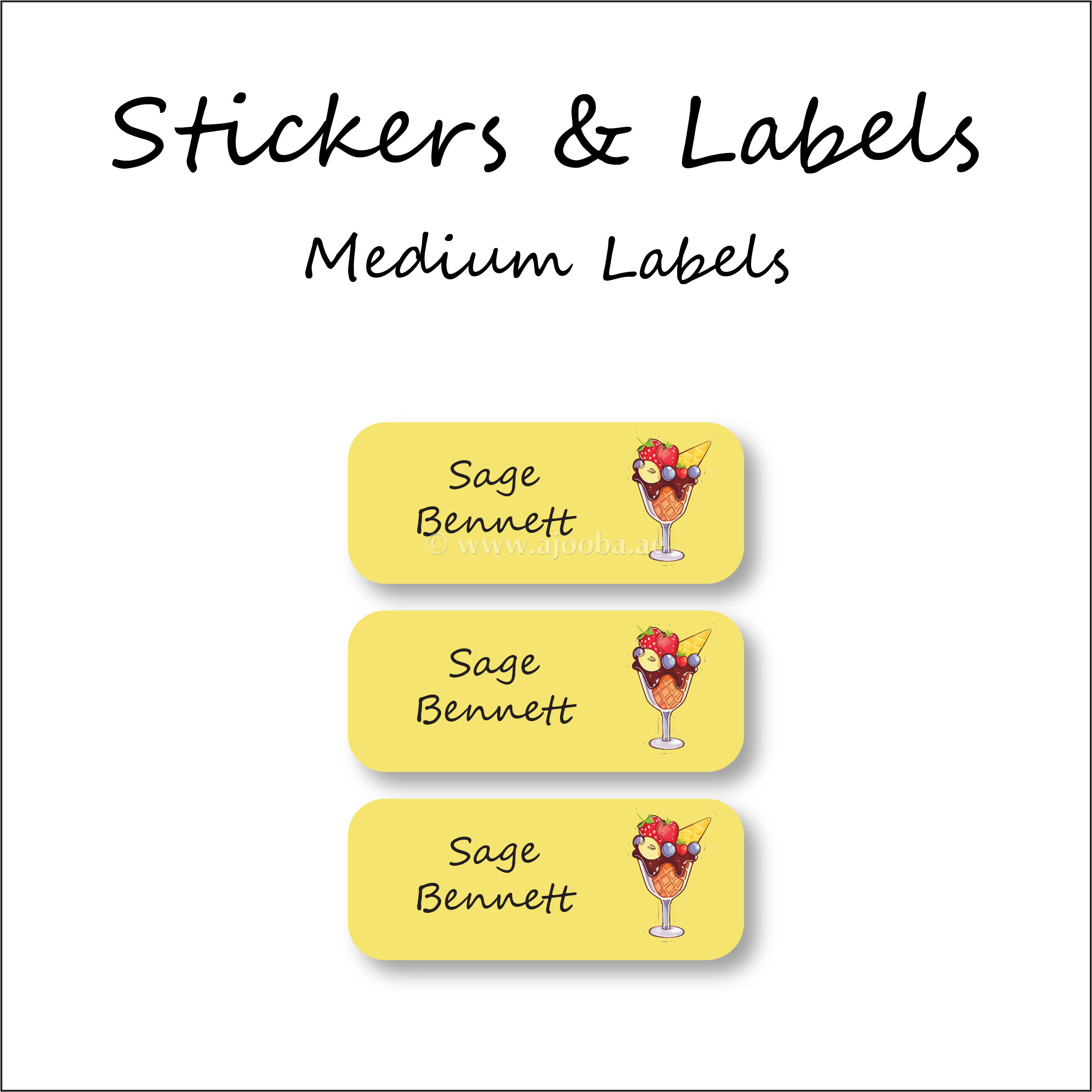 Ajooba Labels is here to stop your trips to the lost and found and to save you money from replacing lost items with our Ice Cream theme Name Labels! These kid name labels will keep your child’s belongings organized, accounted for, and personalized. Our durable name stickers are perfect for everything that leaves the house with your child.