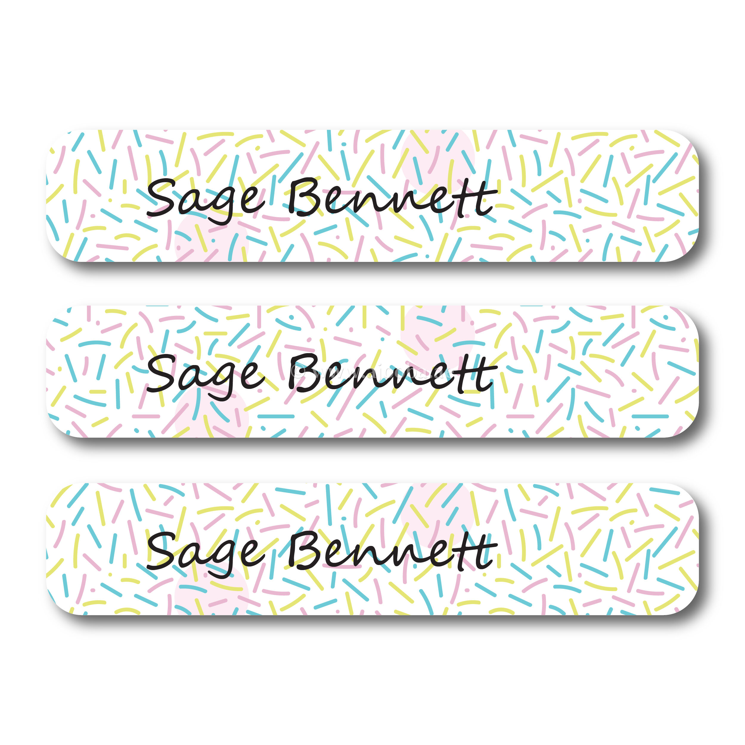 These personalized name stickers are a great way to keep tabs on your child's lunchboxes, folders, notebooks, snack containers, water bottles, electronics, sports gear, medical devices, skateboards, and more. Our kid name stickers are waterproof, dishwasher-safe, freezer-safe, and microwave-safe. They're easy to use: simply peel and stick onto clean, dry surfaces! With bold styles and clear, legible print, your child’s belongings will stand out in the crowd! Label items for camp, school, daycare, field trips, sleepovers, and more!