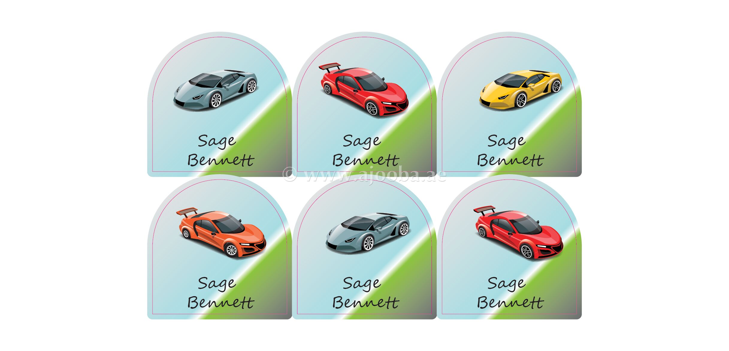 If you have a little one that tends to lose their shoes or get them mixed up with their classmates or peers at school or daycare or even the sand play area, then Ajooba has a solution with our Labels! Our custom shoe labels for your kids are the best way to personalize their shoes and keep track of them. These name labels for kids feature a Racing Cars design and are available with a extra layer of lamination.