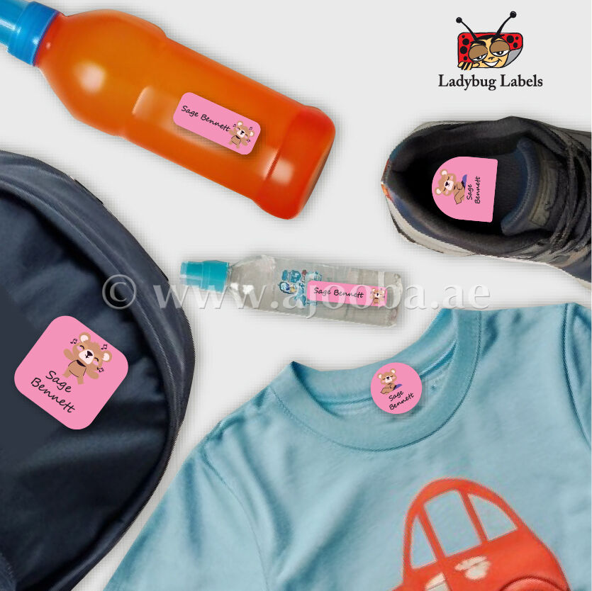 Ajooba Labels is here to stop your trips to the lost and found and to save you money from replacing lost items with our Tedy Bear theme Name Labels! These kid name labels will keep your child’s belongings organized, accounted for, and personalized. Our durable name stickers are perfect for everything that leaves the house with your child.