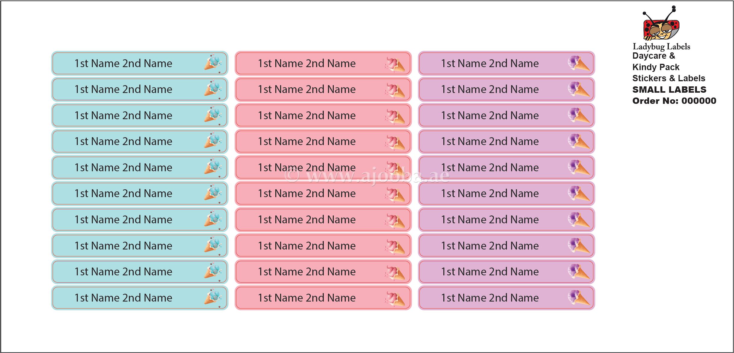 Ajooba Labels is here to stop your trips to the lost and found and to save you money from replacing lost items with our Ice Cream theme Name Labels! These kid name labels will keep your child’s belongings organized, accounted for, and personalized. Our durable name stickers are perfect for everything that leaves the house with your child.