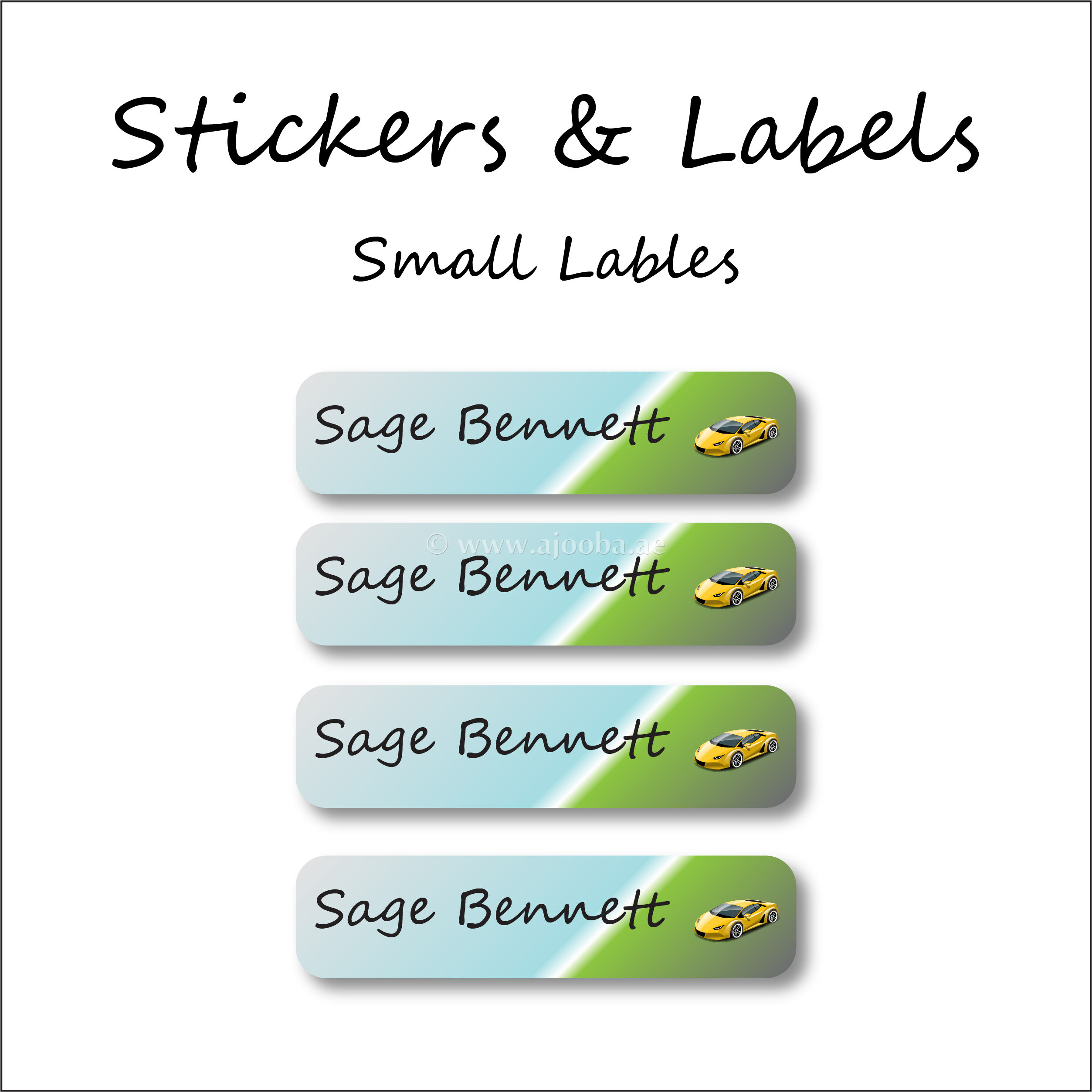 Ajooba Labels is here to stop your trips to the lost and found and to save you money from replacing lost items with our Racing Cars theme Name Labels! These kid name labels will keep your child’s belongings organized, accounted for, and personalized. Our durable name stickers are perfect for everything that leaves the house with your child.